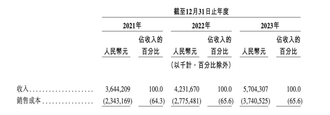 根据茶百道公告,2021年、2022年和2023年,茶百道收入分别为36.44亿元(人民币,下同)、42.32亿元和57.04亿元。
