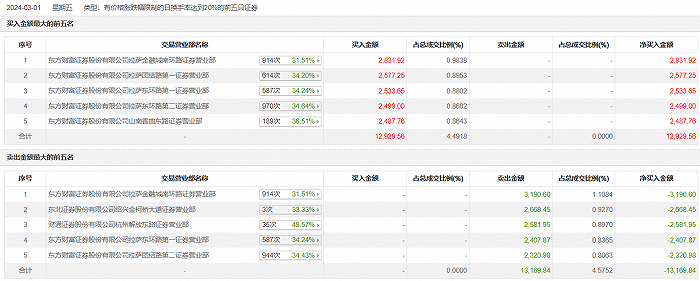 具体来看,东方财富证券拉萨金融城南环路证券营业部、东方财富证券拉萨团结路第一证券营业部分别买入2831.92万元、2577.25万元;东方财富证券拉萨金融城南环路证券营业部、东北证券绍兴金柯桥大道证券营业部分别卖出3190.60万元、2668.45万元。