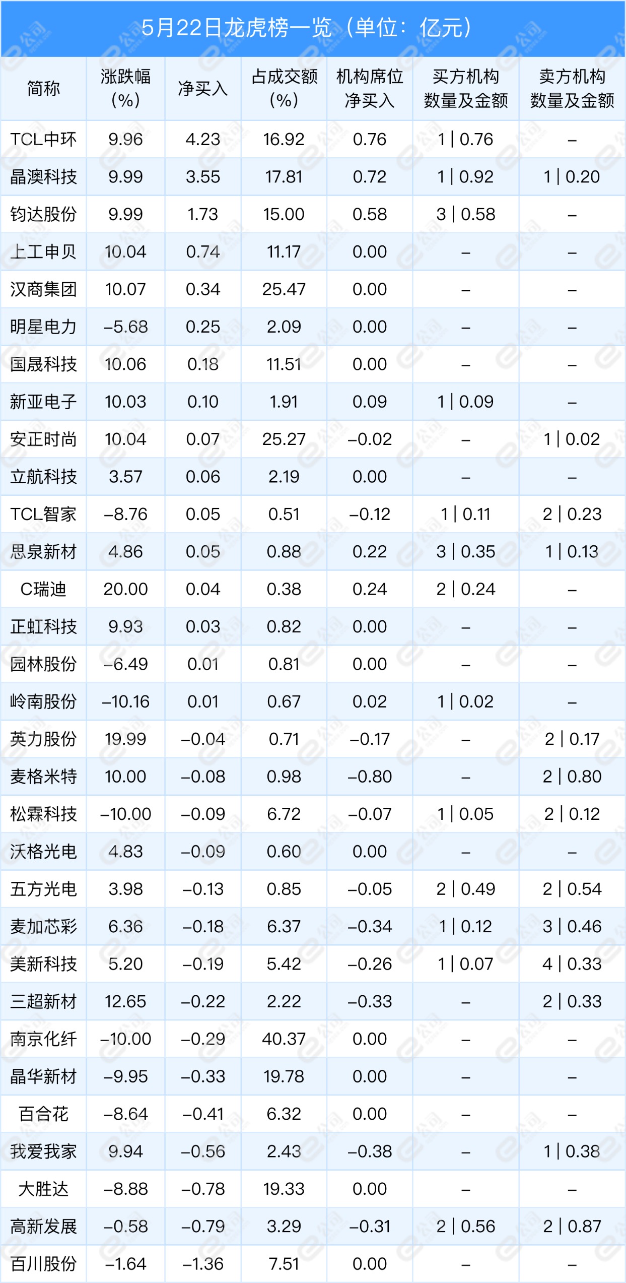 炒股配资网上配资配资网 5月22日龙虎榜追踪 机构青睐这些个股